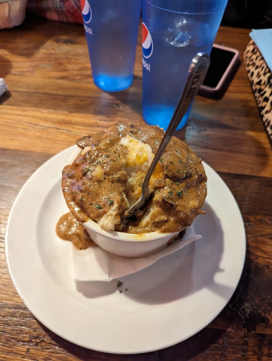 On one weekend night visit when a band was playing, the pub was so crowded and understaffed there was no place to sit and it was almost impossible to get served. On two recent visits for private gatherings in the side room: staff was helpful and attentive and the drinks were fine. Food on the buffet was unremarkable; the shepherds pie seemed to be mostly a brown mush (of potatoes I guess?) with no discernible meat. A dessert that may have been an apple cobbler, but could’ve been bread pudding, was doughy and cloying. Everything seemed to be overcooked and monochromatic—except the salad, which was tasty.